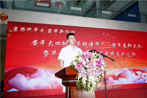 院级“先进基层党组织”内科党总支第七党支部书记丁玉荣,外科党总支第一党支部宣传委员,院级“优秀共产党员”詹焱青分别代表受表彰的先进集体和个人上台发言。