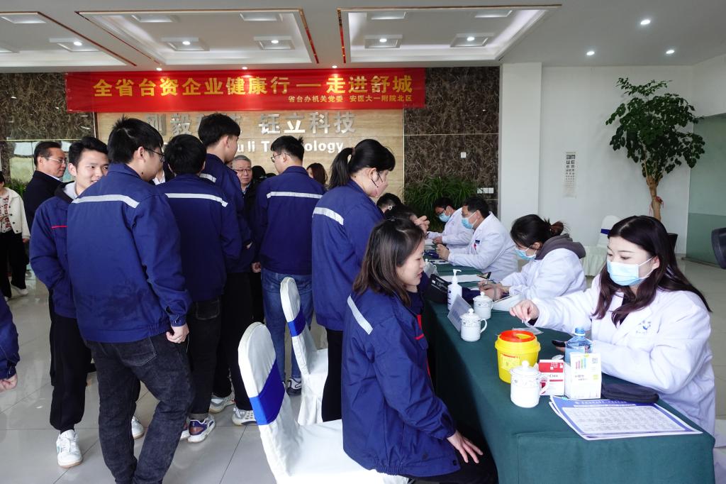 为认真贯彻落实省委“一以贯之五做到,踔厉奋发五提升”要求,进一步推深做实“为民惠企争模范”行动。4月7日,省委台办携手我院联合开展全省台资企业健康行--走进舒城活动,组织医疗志愿者服务队赴舒城刚毅电子、钰立电子等台企开展义诊、急救知识宣讲等系列活动。省委台办副主任、机关党委书记张胜利,我院领导戴晓支、邓洪禹,省委台办机关干部、我院相关职能部门负责人及十余名医护专家参加了此次活动。