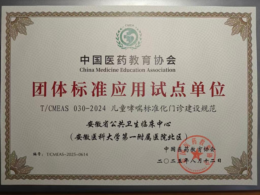 近日,我院儿童哮喘专科门诊正式获评成为全国“儿童哮喘标准化门诊建设规范”团体标准应用试点单位。此次国家级资质认证,标志着我院在儿童哮喘的规范化诊疗、系统化管理以及全程化关爱方面达到了国内先进水平,将为省内哮喘患儿带来更权威、更精准、更便利的诊疗。