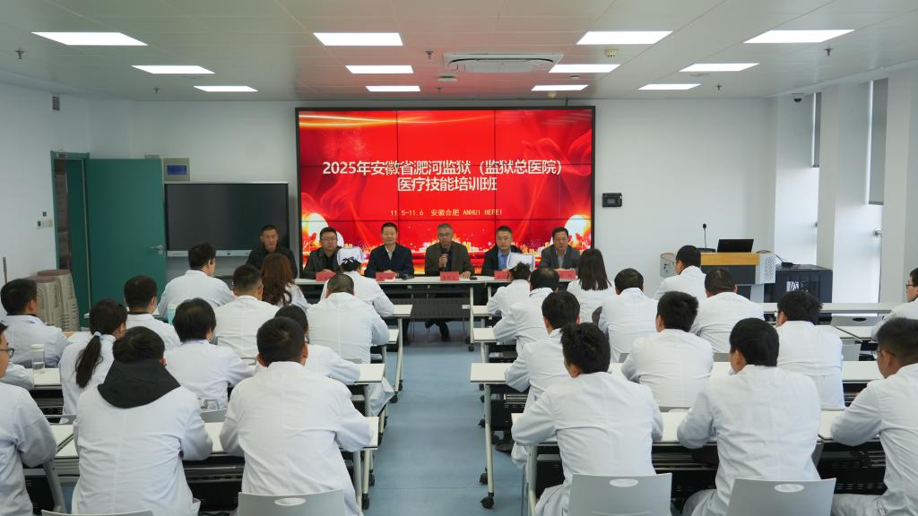 11月5日上午,淝河监狱(监狱总医院)2025年医疗技能培训班开班仪式在我院临床技能中心正式举行。我院党委书记戴晓支,淝河监狱(监狱总医院)党委书记、政委周钧,副监狱长朱剑峰出席仪式。