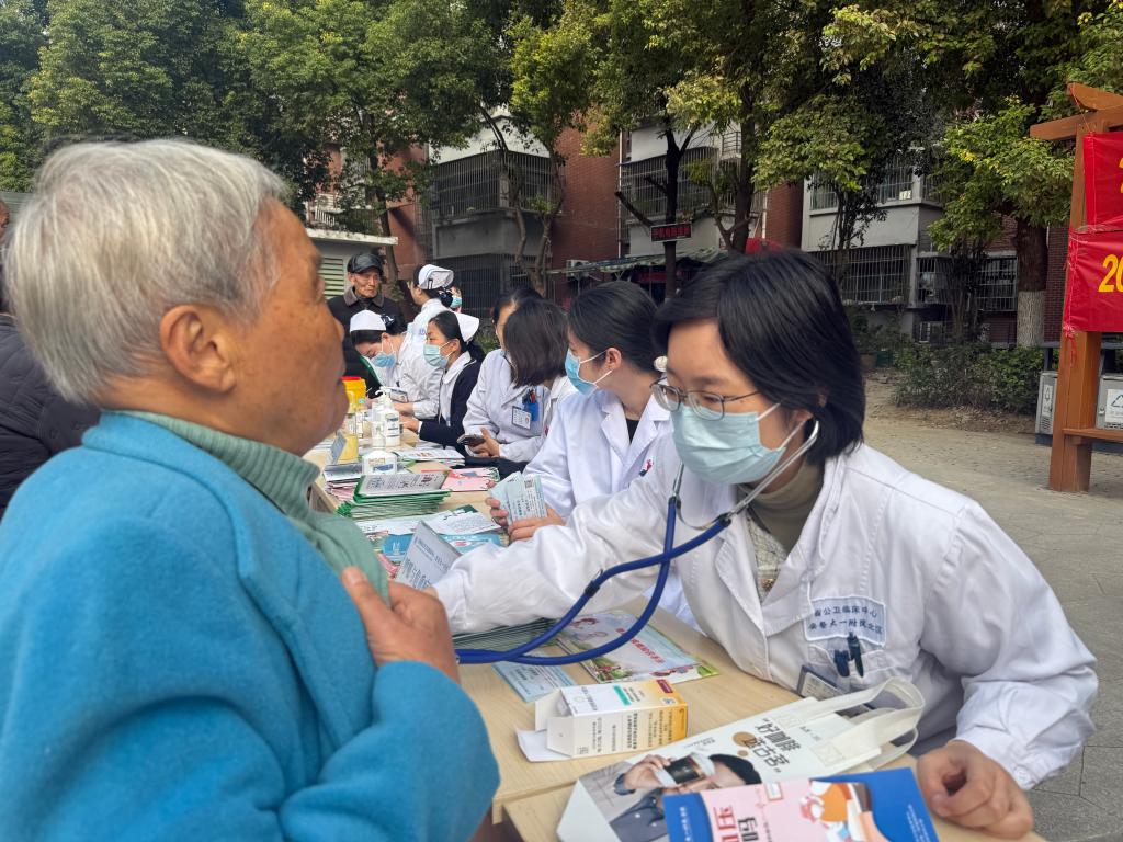 在联合国糖尿病日与世界慢阻肺日到来之际,11月13日上午,我院内分泌与代谢病科、呼吸内科、心血管内科的专家前往七里塘街道张洼社居委,以糖尿病与慢阻肺科普为重点,围绕中老年人常见的心血管、内分泌与呼吸系统疾病,开展以“三高”同筛,心肺联防为主题的多学科联合义诊活动。