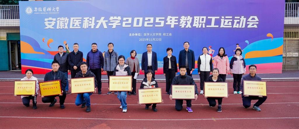 11月22日,2025年安医大教职工运动会在梅山路校区运动场举行,我院代表队获得团体总分第五名的优异成绩,运动员孙飞荣获校“优秀运动员”称号。党委副书记、副院长陈然参加开幕式。