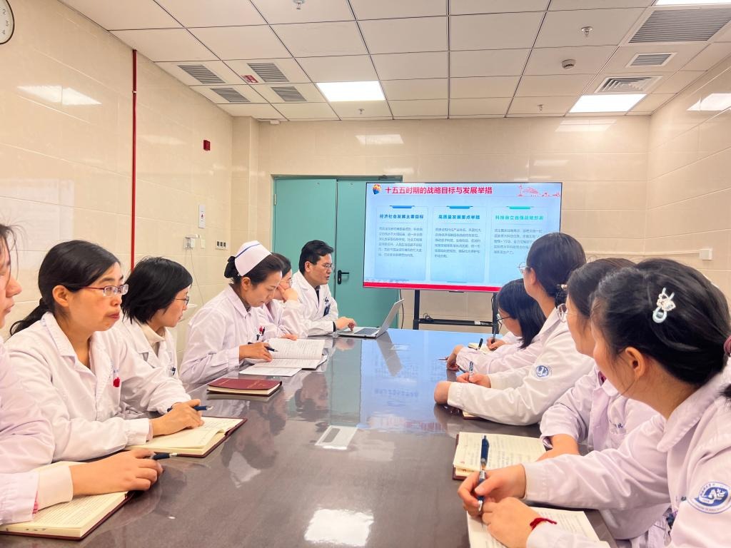李永怀围绕全会精神核心要义、医院学习贯彻总体要求、强化党建引领、优化医疗服务、深化运营管理五大方面展开。他指出,全会将 “加快建设健康中国” 置于重要战略位置,为卫生健康事业发展指明了方向,医院要牢牢把握 “以人民健康为中心” 的发展理念,坚守公立医院公益属性,聚焦群众看病就医“急难愁盼”问题。他强调,要以全会精神为指引,强化党建与业务深度融合,筑牢思想根基;持续优化医疗服务流程,加强学科人才建设与专科品牌打造,坚守医疗质量安全底线;深化精细化管理,通过DRG支付改革赋能资源配置优化、成本管控升级与绩效考核完善,构建高效运营体系。同时,要将全会精神与医院 “十五五” 规划紧密结合,推动医院发展方式、管理模式、资源配置等多维度转变,培育卫生健康领域新质生产力。