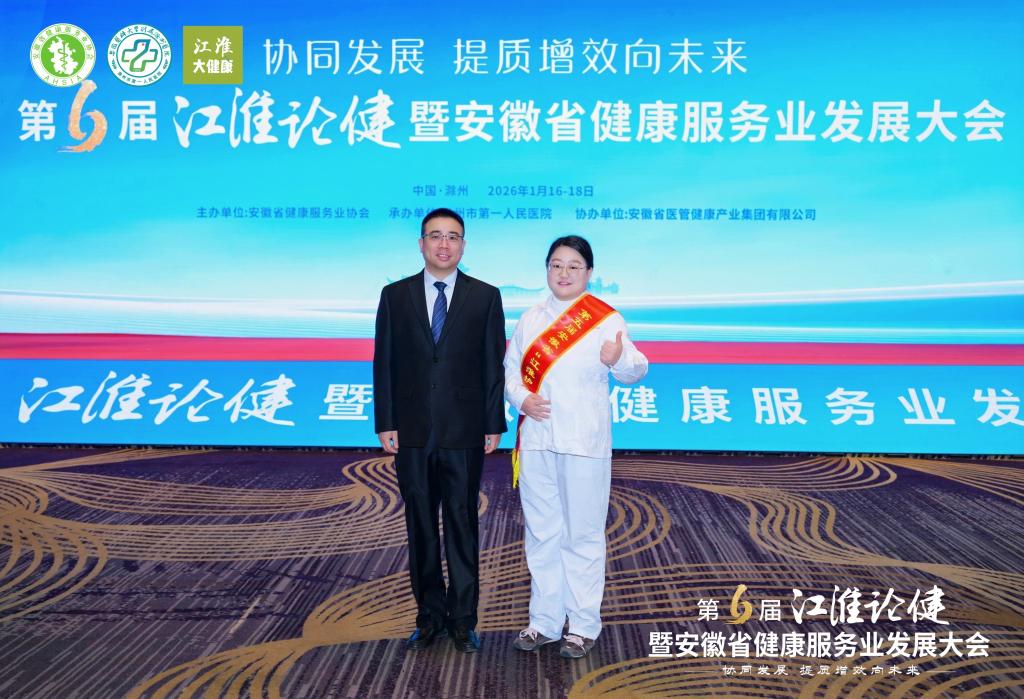 近日,第六届江淮论健暨安徽省健康服务业发展大会在滁州召开。大会对2025年安徽省健康服务业“十佳”和第五届安徽省“江淮护理之星”进行颁奖。我院神经外科江涛荣获“十佳健康卫士”称号,护理部纪文获评“江淮护理之星”称号。