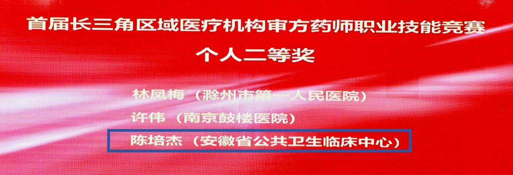近日,首届长三角区域医疗机构审方药师职业技能竞赛在合肥落下帷幕。我院药学部陈培杰药师历经安徽省选拔赛、长三角区域初赛、长三角区域决赛,层层角逐,最终凭借优秀的表现荣获个人二等奖。