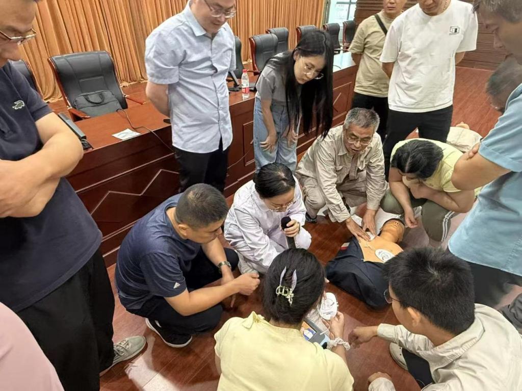 2025年7月14日,为发挥党员先锋模范作用,践行志愿服务精神,急诊医学科党支部近日组织支部党员陈立旻主治医师和张妙景主管护师,走进合肥供电公司,开展“送急救知识进企业”志愿培训活动。活动内容紧密结合供电公司职工实际工作场景,涵盖触电急救、创伤急救等实用知识与技能,讲师们深入浅出地讲解了心肺复苏(CPR)、 自动体外除颤器(AED) 的使用、创伤包扎及气道异物梗阻急救方法。