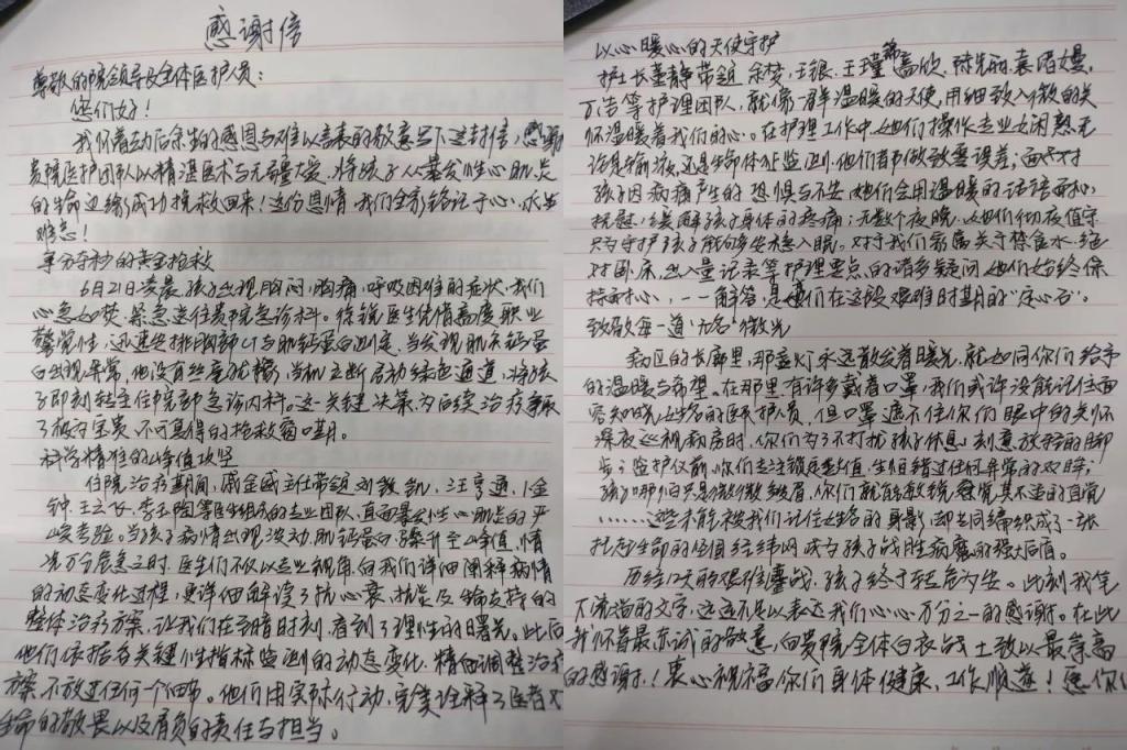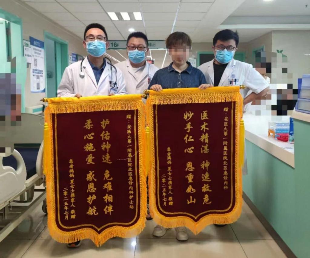 2025年7月30日,急诊医学科党支部多名医护人员收到患者送来的锦旗和感谢信,患者用质朴文字,讲述就医时,急诊医护团队认真负责、暖心照护的经历,传递医患间的温暖与信任。