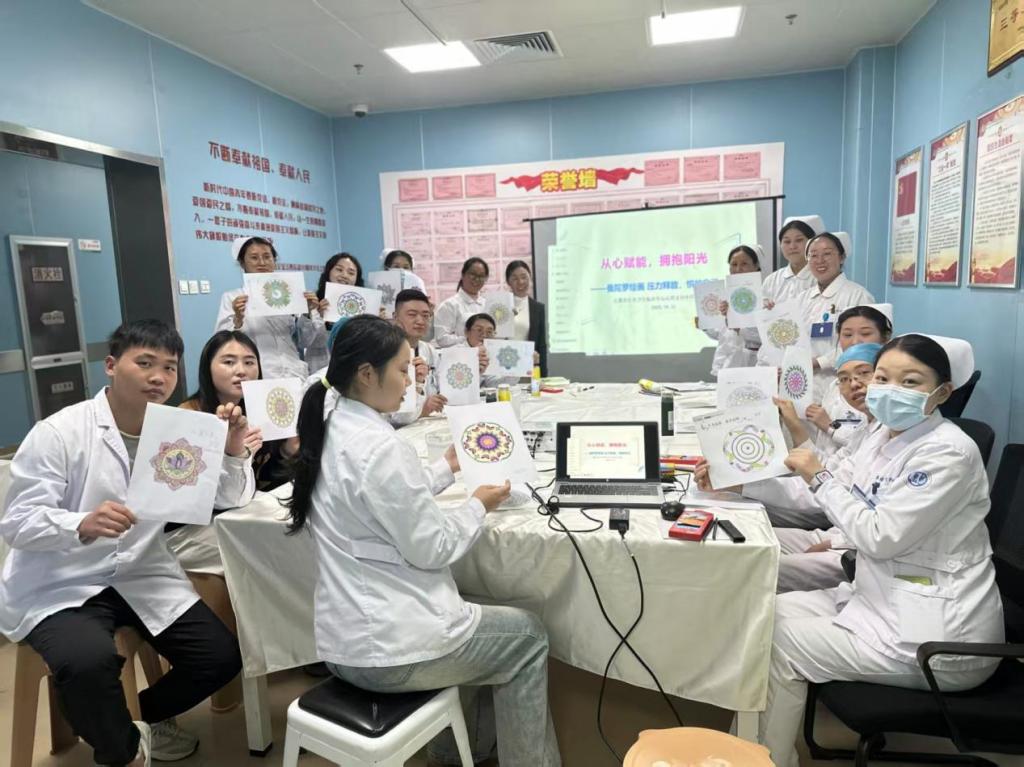 2025年11月4日,为切实关爱医护人员身心健康,缓解工作压力与职业倦怠,为“白衣战士”筑牢心理防护墙,急诊医学科党支部联合我院心理支持小组成功举办以“从心赋能 拥抱阳光”为主题的曼陀罗绘画心理健康沙龙活动,来自各科室的数十名医护人员齐聚一堂,在色彩与线条中开启心灵疗愈之旅。